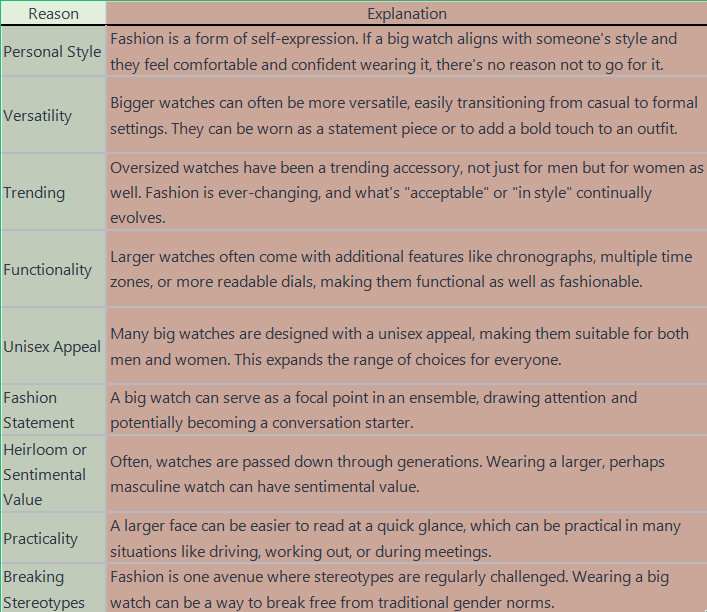 So, when you choose to rock a big watch, you’re not only embracing a fashion-forward look but also opting for a highly practical piece. It’s a win-win situation that balances form with function, proving that sometimes, size really does matter!