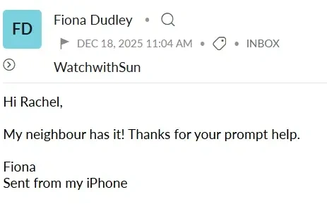 Contact form: Visit watchwithsun.com/contact for quick, human responses to any questions or to share your experience.