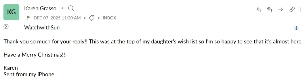 The majority of our reviews arrive directly in our inbox, and there’s something special about that. When customers take time to compose a personal email sharing their experience, we know it’s genuine. These aren’t prompted by automated review requests—they’re spontaneous expressions of satisfaction.