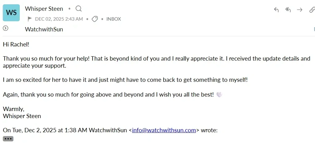 Every review we receive tells a story—a story about a watch that exceeded expectations, packaging that brought a smile, or service that went the extra mile. At WatchwithSun, customer feedback isn’t just data; it’s the heartbeat of everything we do.