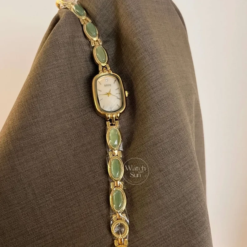 Vintage Style Green Jade Stone White Face Bracelet Watch for Women