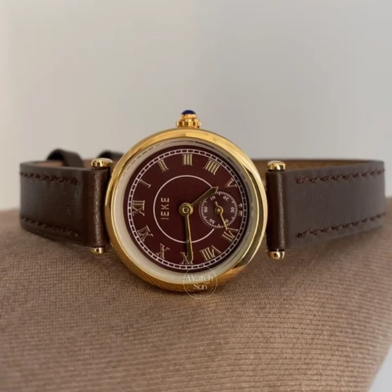 Classic Burgundy Roman Numeral Dial Watch Brown Leather Strap Watch