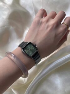 1 review for Black Stainless Band Green/Purple Dial Watch for Women
