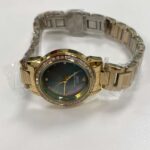 This chic ladies’ watch features a shimmering blue mother-of-pearl dial paired with a polishe gold bracelet band. The dainty round face and refined details create a feminine and elegant look, perfect for daily wear or special occasions. A delicate choice for women who love subtle luxury.