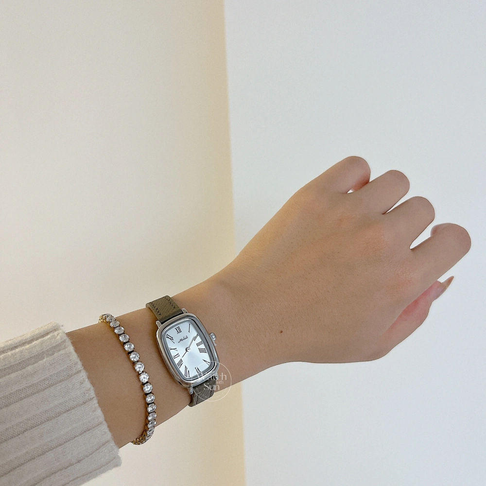 This refined watch features a rectangular silver dial with prominent Roman numerals, ensuring easy readability. The brown genuine leather strap adds comfort and versatility, making it a perfect match for various styles.