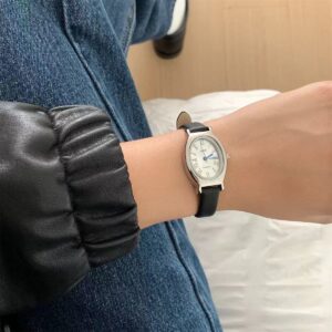This elegant watch features an oval-shaped white dial, complemented by a comfortable PU leather strap in brown and black. Its versatile design makes it suitable for any style, effortlessly matching both casual and formal looks.