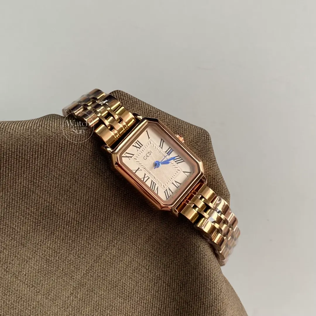 7 reviews for Dainty Champagne Gold Square Bracelet Ladies Watch