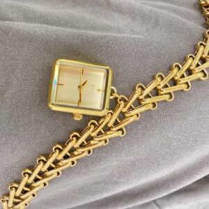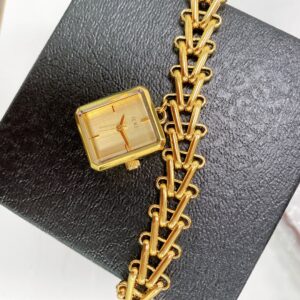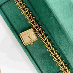 Inspired by vintage aesthetics, this square face gold watch features a statement chain band that’s both bold and refined. The golden hue offers a luxurious finish, while the dainty dial keeps the design feminine. A standout piece that transforms any outfit, whether you’re dressing up or adding flair to your everyday look.
