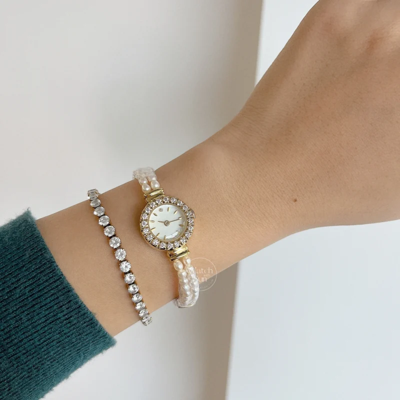 Dainty Gold Watch Elegant Freshwater Pearl Band Watch for Women