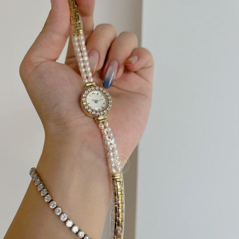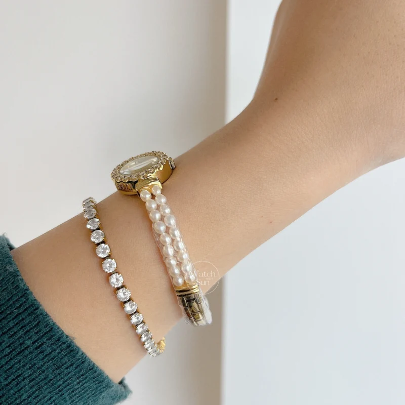 Refined and radiant, the Dainty Gold Watch Elegant Freshwater Pearl Band Watch for Women blends timeless beauty with delicate craftsmanship. Its petite gold case is paired with a minimalist dial, while the band—adorned with genuine freshwater pearls—adds a touch of natural elegance. This graceful design celebrates femininity in its most classic form, making it a stunning accessory for both everyday moments and special occasions.