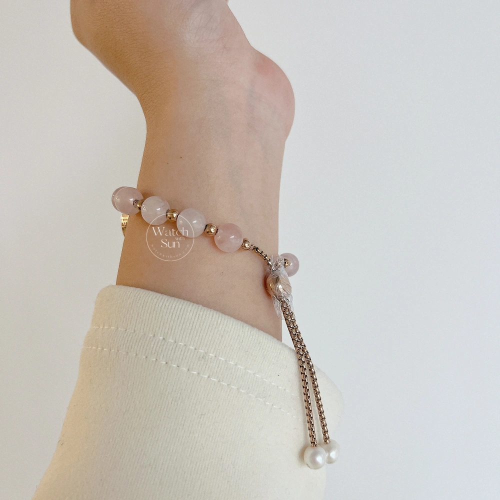 Dainty Rose Quartz Bracelet Ladies Watch Mother of Pearl Dial Pink Bracelet Watch