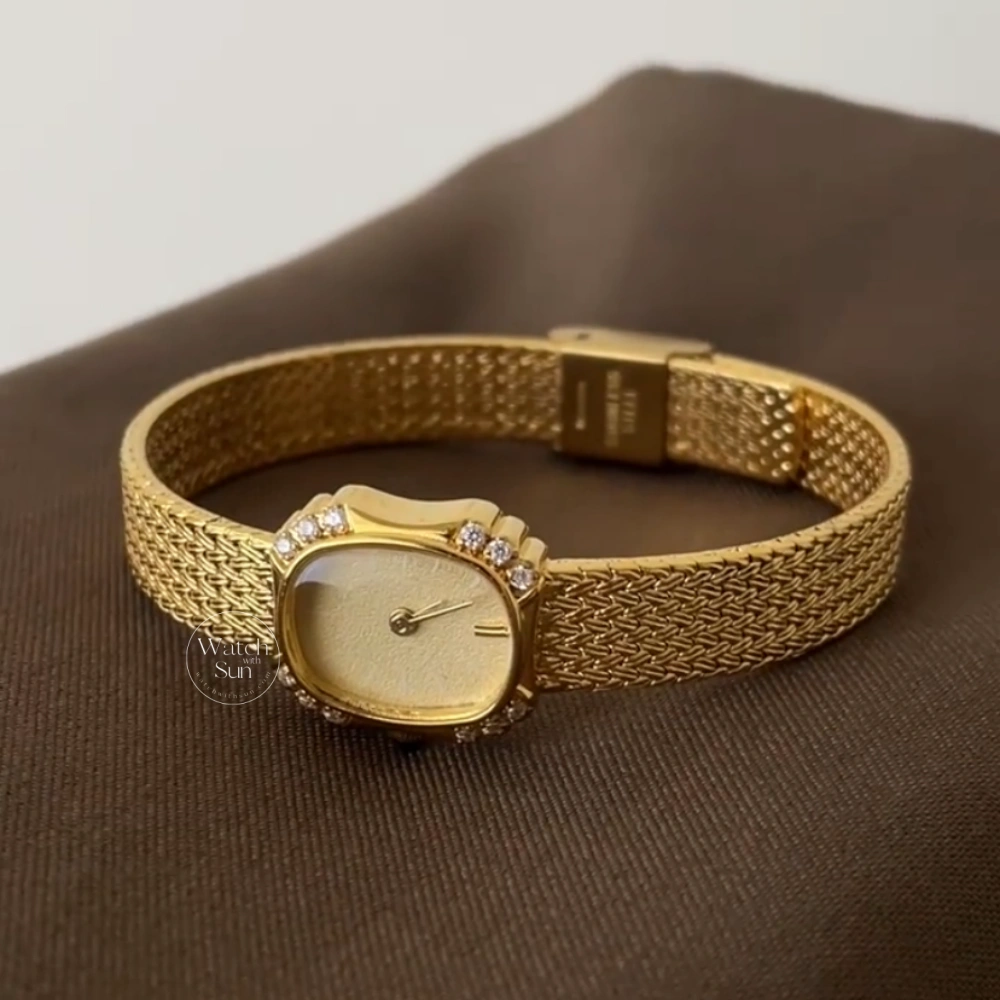 Vintage-Inspired Oval Face Mesh Band Watch Dainty Small Gold Ladies Watch