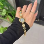 Elevate your look with this gold clover bracelet watch for women, featuring a delicate round gold dial, sparkling crystal accents, and elegant mother of pearl clover links. The intricate bracelet design blends jewelry elegance with timekeeping function, making it perfect for both casual outings and formal occasions. Crafted with a high-quality quartz movement for precise timekeeping, this piece is a stunning fashion accessory and thoughtful gift for birthdays, anniversaries, or special celebrations.