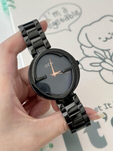A chic and modern black watch designed for women who love understated elegance. Featuring a polished stainless steel bracelet and a sleek, dark dial, this timepiece captures both strength and femininity. Perfect for office days, evening gatherings, or weekend outings—it adds a touch of cool sophistication to any look. Stylish, versatile, and effortlessly refined.