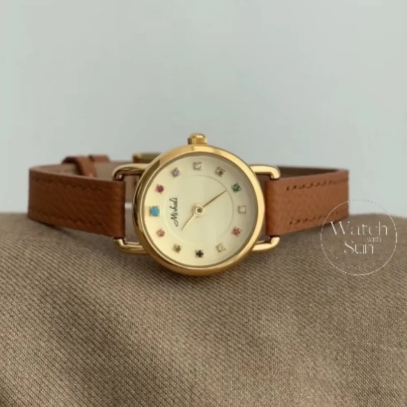 Coupled with a sleek, high-quality genuine leather band, this watch is both luxurious and eye-catching, ideal for those who appreciate distinctive design and exceptional craftsmanship. Stylish round-face watches with 12 different colored cubic zirconias for each hour. This unique design adds a vivid and elegant touch, making it a perfect accessory for any occasion.