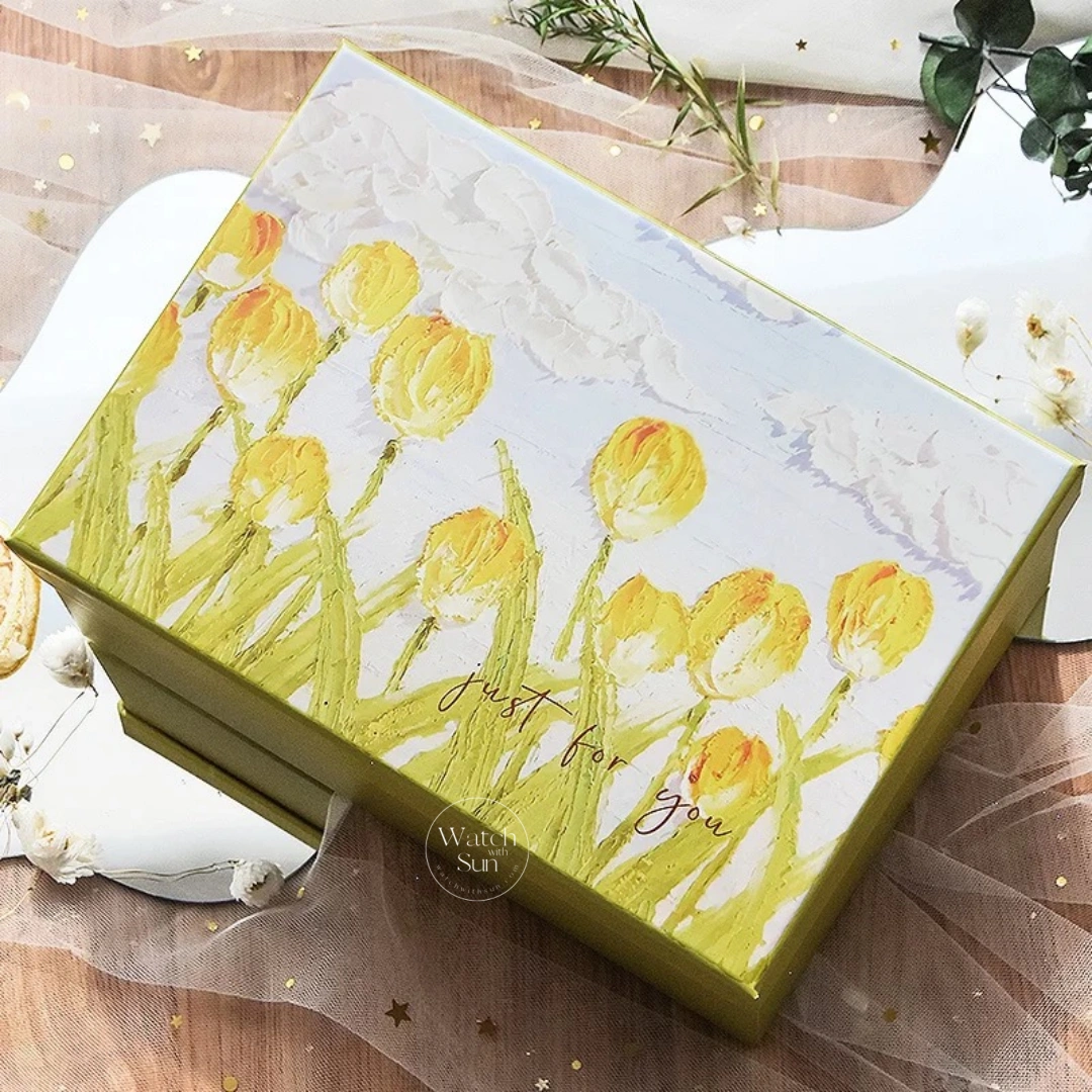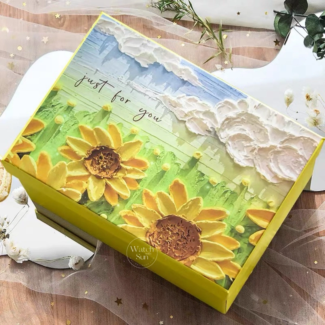 Bring a romantic, artistic flair to your watch gifts with our Romantic Oil Painting Print Gift Box. This collection features six exquisite designs inspired by oil paintings, including sunflowers, cherry blossoms, tulips, roses, and dreamy moonlit skies. Each box showcases a beautifully printed oil-painting effect with soft, graceful colors that add warmth and creativity to every gift. Perfect for birthdays, anniversaries, or any heartfelt occasion, it adds a touch of elegance and romance to your watch, making every gift feel truly special.