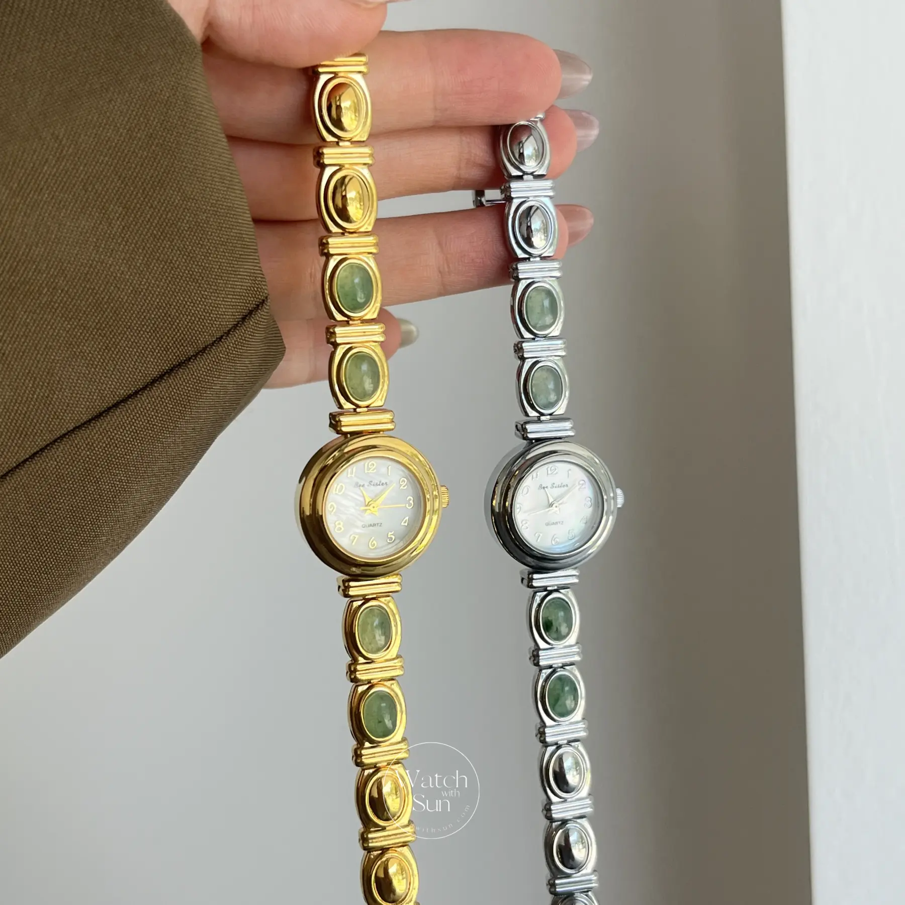 3 reviews for Small Face Gold Green Natural Stone Watch for Women