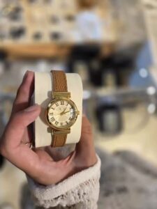 This elegant round-shaped watch features a timeless dial available in white and gold, offering a sophisticated look suitable for various occasions. Its minimalist design makes it a versatile accessory for any style.