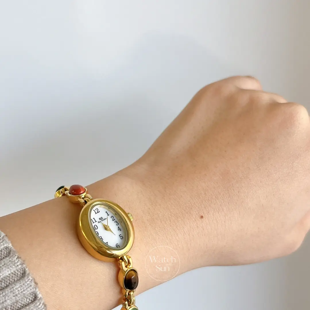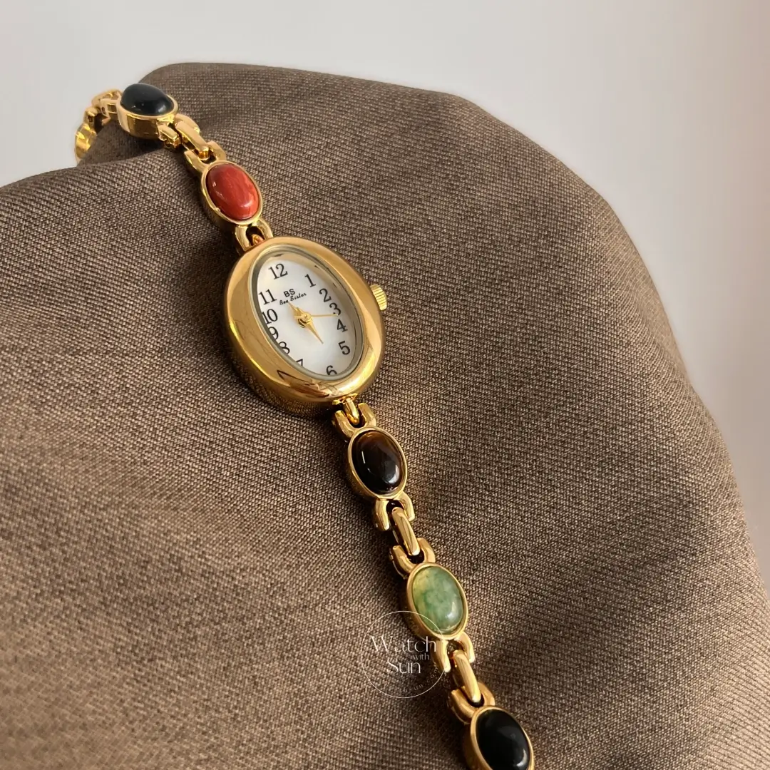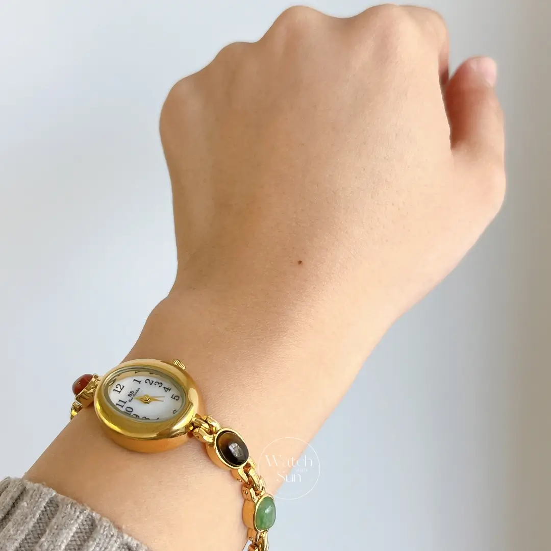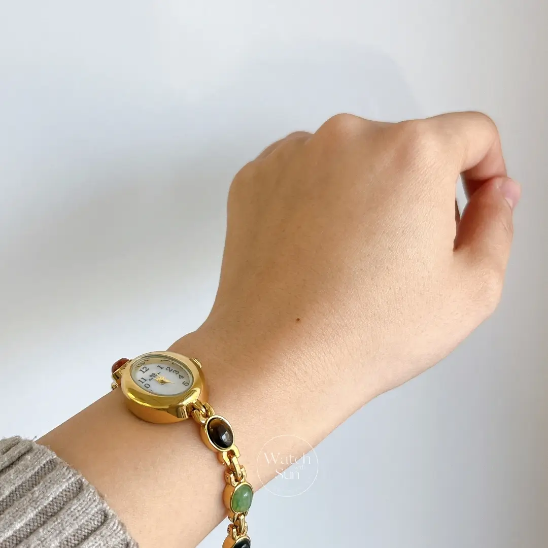 21 reviews for Vintage Gold Watch Mother of Pearl Dial Colorful Nature Stone Bracelet Watch