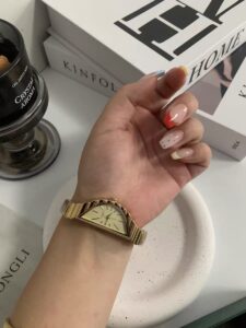 Finally a dainty watch that stands out. The half moon face makes my wrist look so much thinner and more elegant. Very happy with the quality.