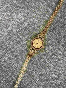 This classic vintage ladies’ watch showcases an octagonal-inspired dial paired with a gold decorative bracelet band. The structured case and detailed links give it a refined jewelry look, perfect for women who favor elegant, vintage-inspired accessories with character.