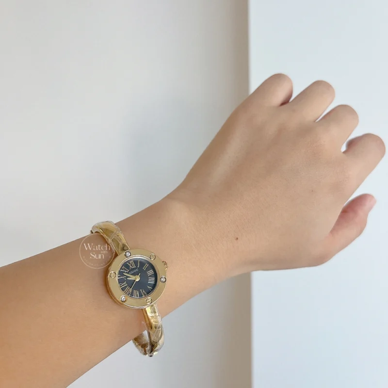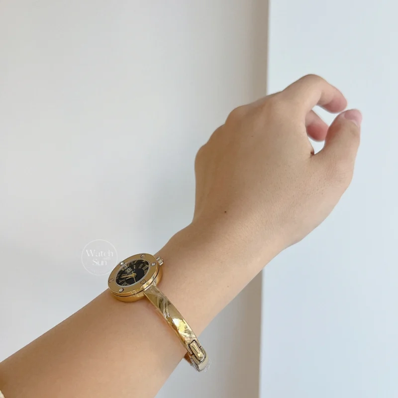 The polished gold-tone stainless steel bangle design offers both durability and elegance, making it perfect for daily wear or special occasions. Powered by precise quartz movement, this watch is as reliable as it is stylish. A versatile fashion accessory and a thoughtful gift for birthdays, anniversaries, or holidays.