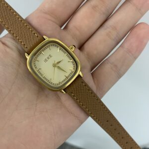 This stylish watch features a square light gold dial with a sleek gold bezel, paired with a comfortable brown genuine leather strap. The minimalist design offers both elegance and versatility, making it perfect for any occasion or style. Loved by women for its timeless appeal, this watch is an excellent gift for the special woman in your life, blending simplicity and sophistication.