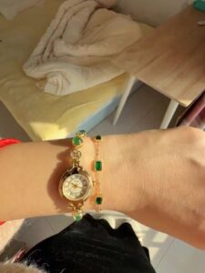 29 reviews for Gold Oval Face Green Beads Bracelet Watch for Women