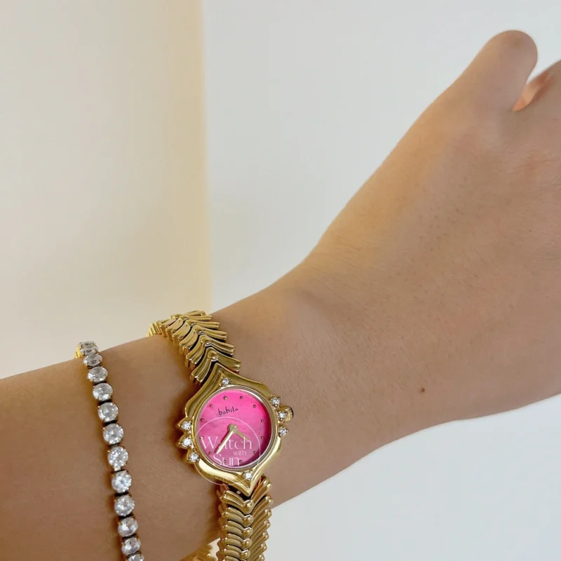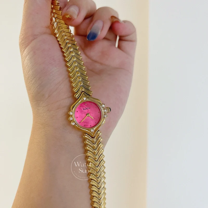Vintage Style Pink Mother of Pearl Dial Bracelet Watch for Women