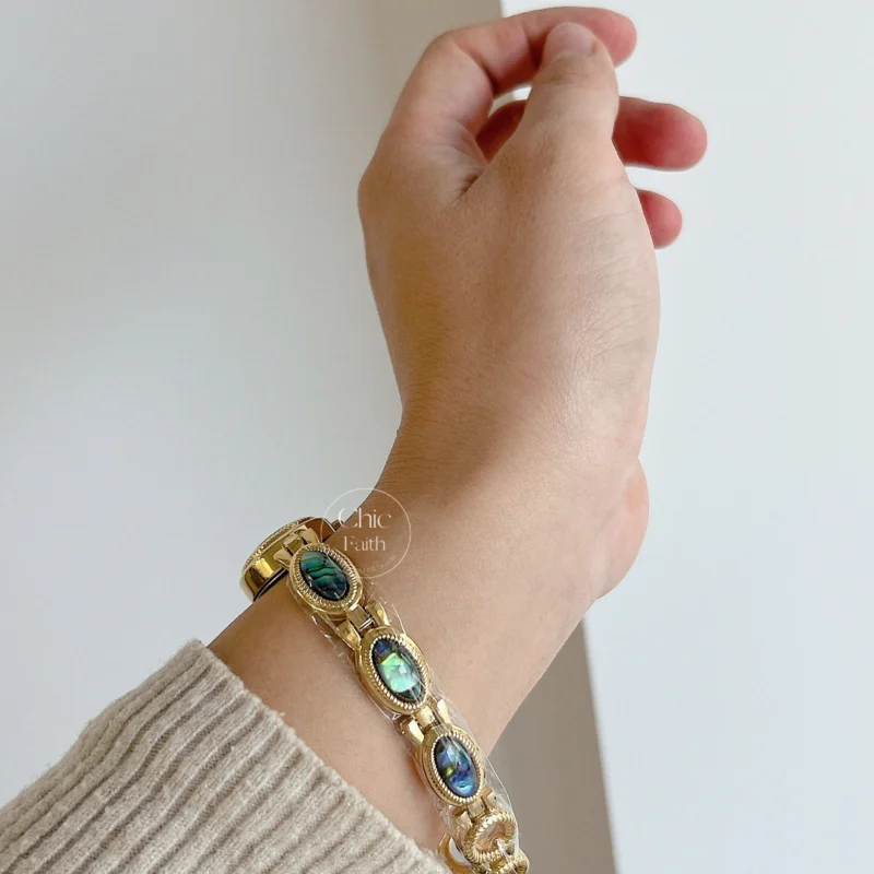 Inspired by the ocean’s natural beauty, the Vintage Watches for Women Natural Abalone Shell Bracelet Watch blends artistry and elegance into a single, timeless piece. The dial’s subtle design is perfectly paired with a bracelet adorned with natural abalone shell, showcasing an array of iridescent blues, greens, and purples that shift gracefully in the light. Every glance reveals the shell’s one-of-a-kind patterns, making each watch as unique as the woman who wears it.