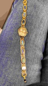 Designed with unique abalone-inspired decorative links, this retro, artistic ladies watch showcases a delicate oval dial set in a gold-tone frame. The natural iridescent textures on the strap create a jewelry-like feel, making it a standout accessory for women who love vintage-inspired, colorful details.