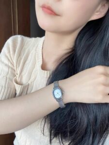 This elegant oval-shaped watch features a dial available in green or purple, offering a unique and vibrant look. The versatile design, combined with multiple style options, makes it a standout accessory for any occasion.